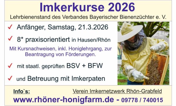 weitere Informationen und Anmeldung: http://www.rhoener-honigfarm.de oder 09778-740015